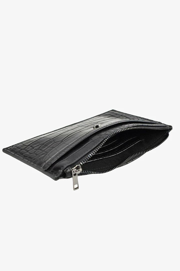 Millie is the latest addition to our slimline wallet range. Slightly larger than marley, the millie pouch is still small enough to fit most crossbody bags. Millie has a main zip top compartment that features four internal credit card inserts and also a front slip pocket that can fit most normal size mobile phones. Millie comes in either a chevron quilt pebble or croc embossed vegan leather all with gunmetal hardware.