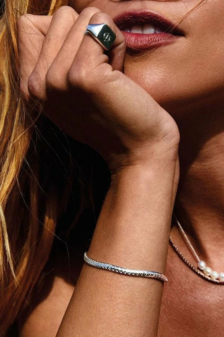 Choose a classic and timeless must-have item that can be worn with all outfits. With this silver-plated bracelet, you get a flat snake chain that radiates exclusivity and class. Perfect for anyone who wants a sturdy bracelet that can be worn in a variety of ways.
