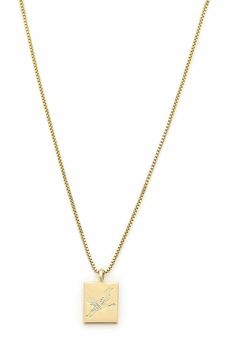 A flying crane is beautifully portrayed in the pendant of this silver-plated necklace. The pendant s angular shape provides a spectacular frame for the graceful bird. A necklace with a beautiful and sophisticated motif that has its roots in Japan, where the crane is thought to bring good fortune. Let this necklace become your personal piece or give it to someone you love.
