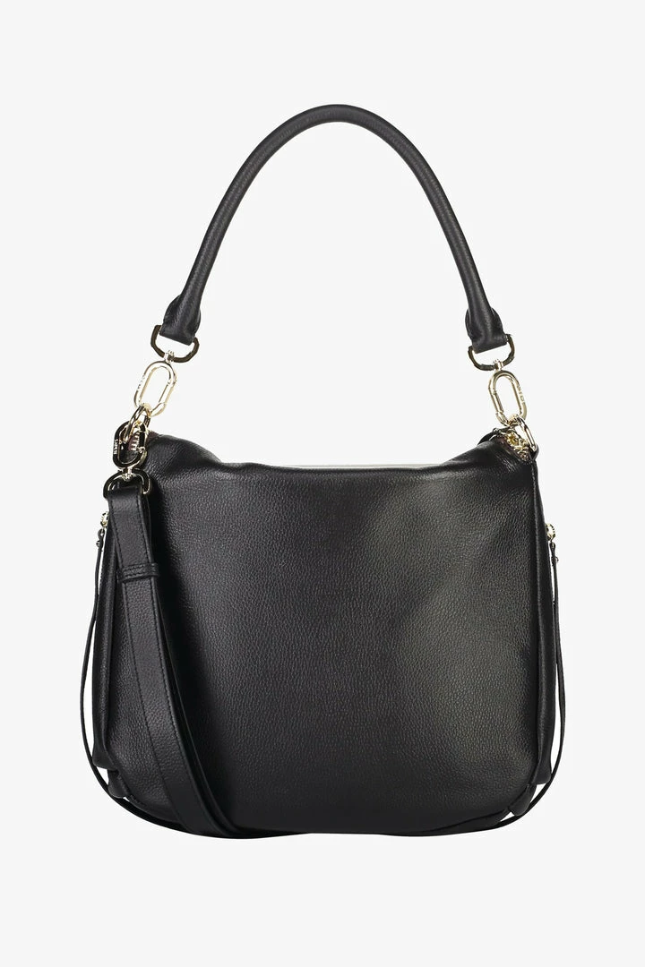 Everyone’s favourite and oh-so functional Frankie! A slouchy shoulder bag, constructed in beautiful pebbled textured leather. The satchel flap opens with an up-sized chunky zip to an entirely separate compartment. Frankie features a tubular top handle, plus a long detachable and adjustable shoulder strap with gold plated hardware. She is the perfect partner from Monday to fun-day. Use the pockets-a-plenty to organise your life.