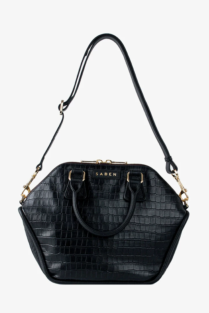 The Liv Leather hand Bag in Croc-embossed leather detail has pebbled textured leather body, top handles and the adjustable and detachable cross-body strap offer multiple ways to wear. Finished with signature pale gold hardware, zip-top closure and poly-nylon lining for easy care.