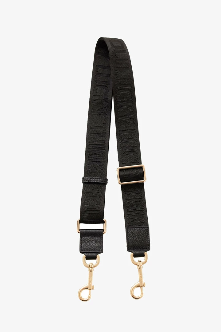 Transform any bag with our new dual colour strap. Black and metallic gold cotton webbing with black leather trim, this perfect adjustable strap will pair beautifully with any bag!