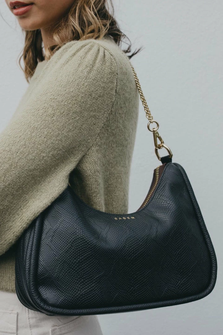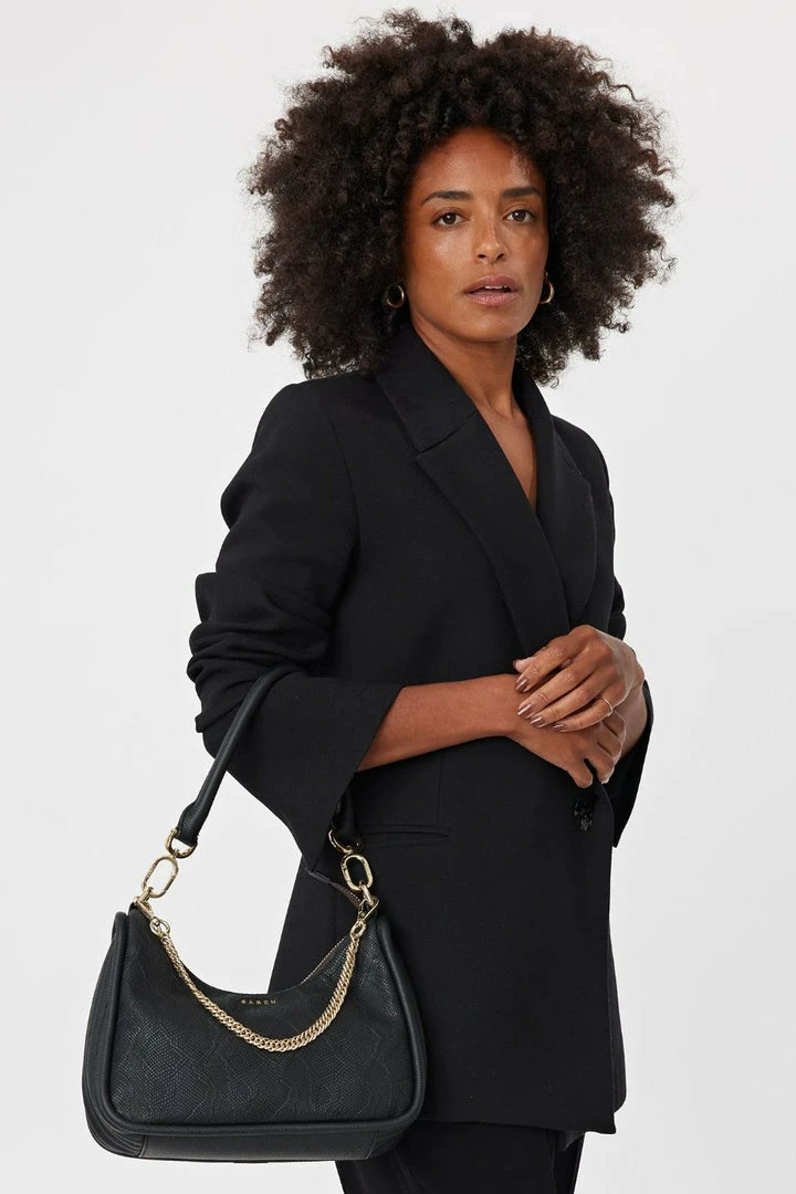 Odette is the perfect quick fix to every outfit in need of a finishing touch. An understated mid-sized style which boasts practical luxury. Constructed with oversized piping detail easy zip-top entry, a shoulder handle and feature chain handle, for added bling. Ooo now thats fancy! Sometimes we just need to level up, but if youre feeling smug – we love Odette paired with our more causal, canvas feature handles too.