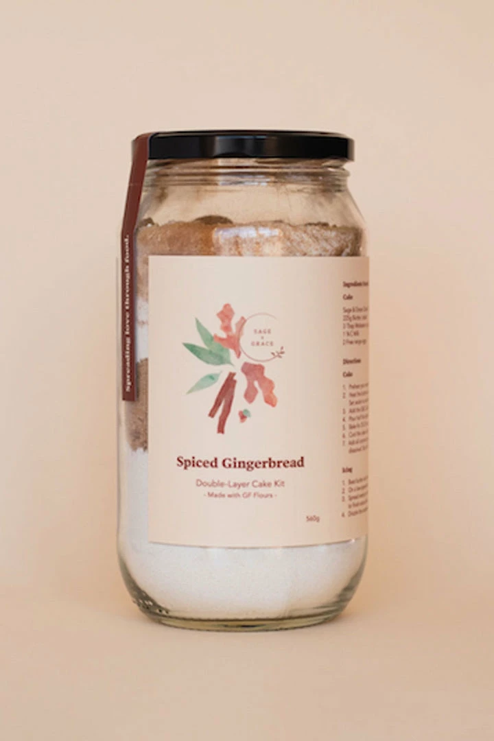 This Spiced Gingerbread Cake Kit is the cake that started Sage and Grace. It has been a crowd favourite since well before the beginning and is the perfect cake for a cool evening with salted caramel drizzled all over it. Serves 14 – as a double layer cake, or bake into mini cakes/muffins and freeze to enjoy later. Adjust baking time slightly. Made with Gluten Free Flours. All you need to add is milk, butter, eggs and molasses/golden syrup.