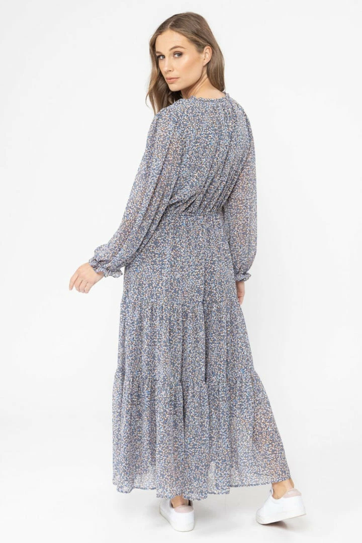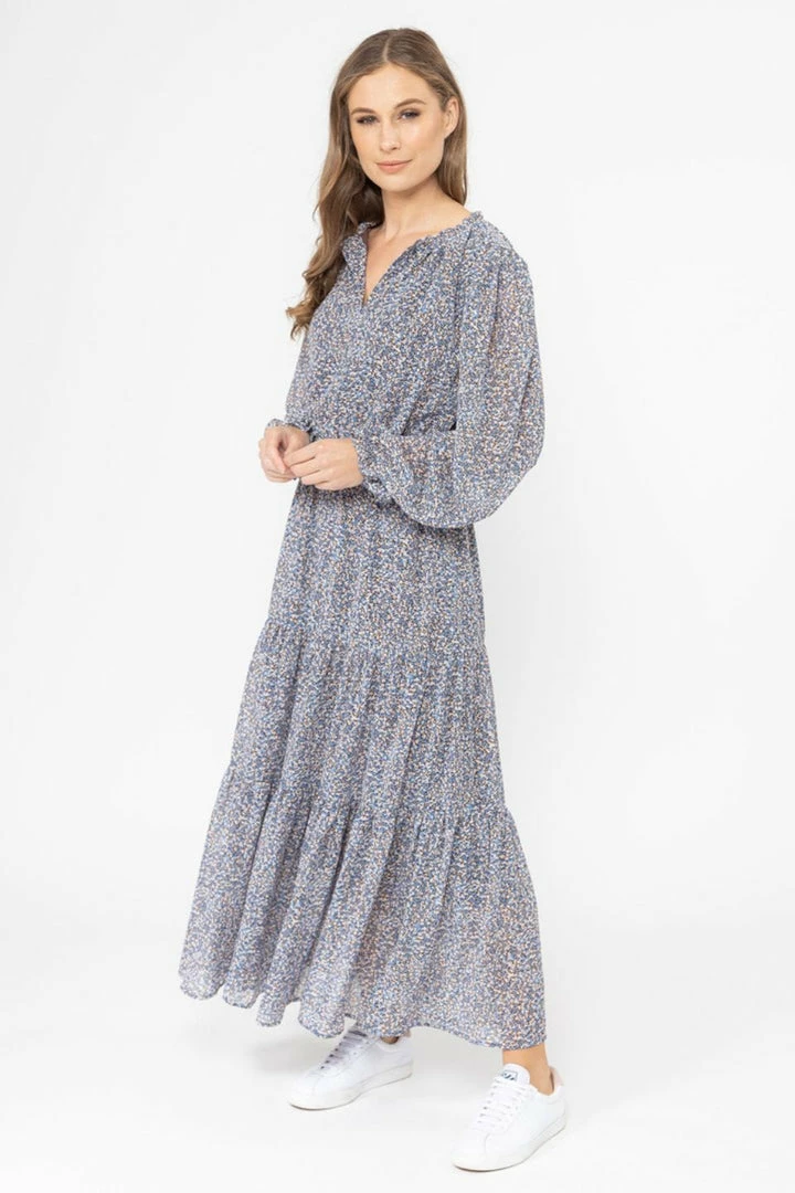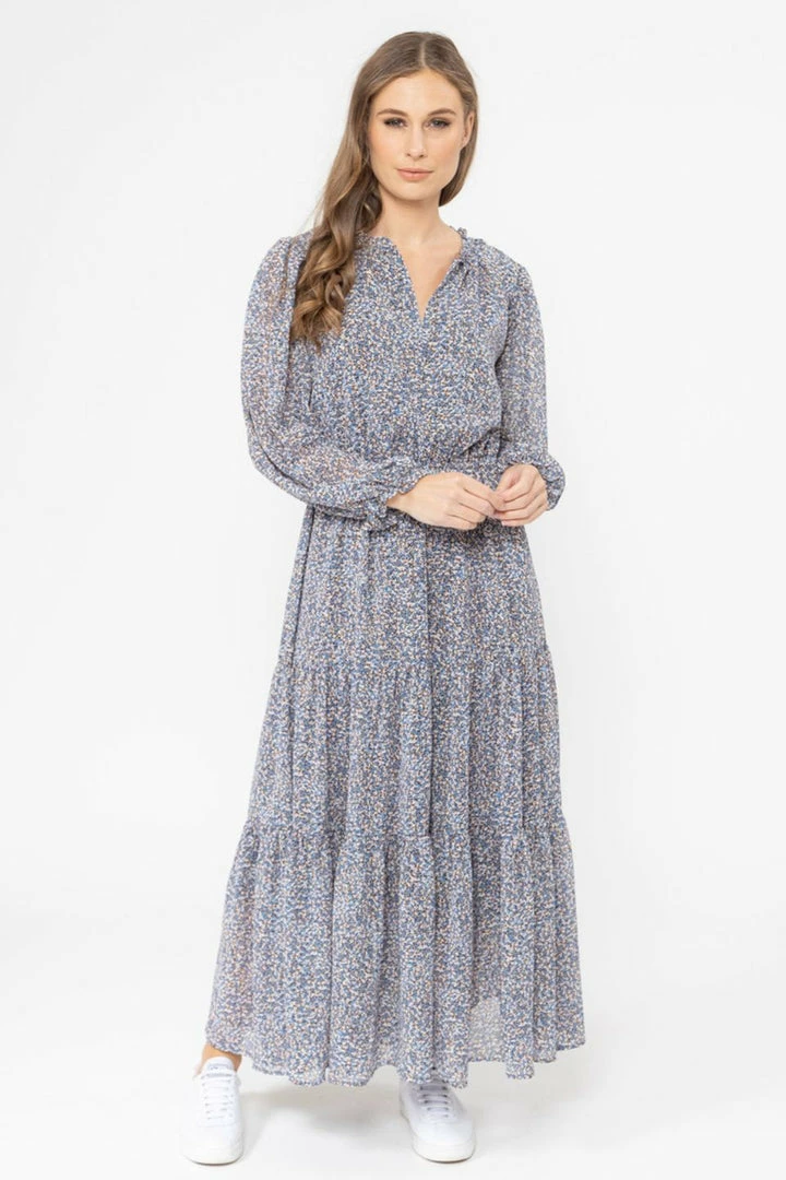 Seeking Lola Magical Blue Floral LS Tiered Maxi Dress