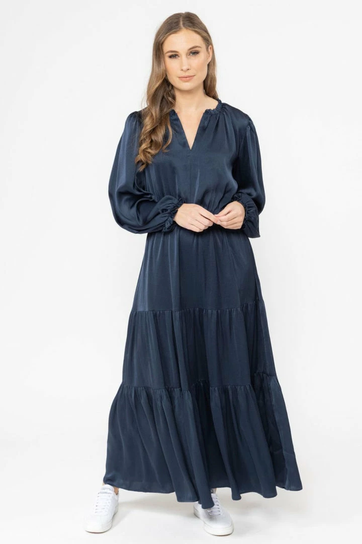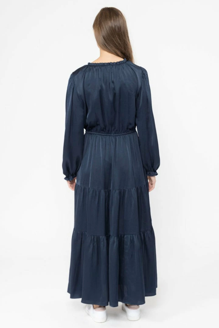 Seeking Lola Magical Navy Satin LS Tiered Maxi Dress