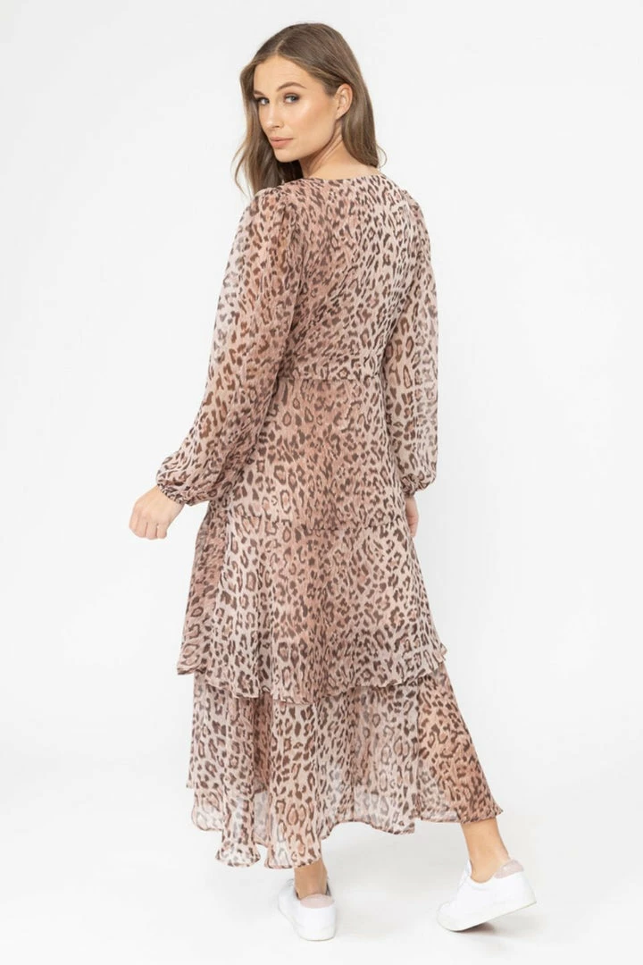 Seeking Lola Paradise Rust Leopard LS Wrap Dress Fashion
