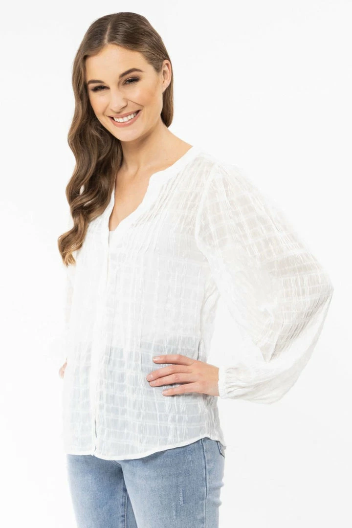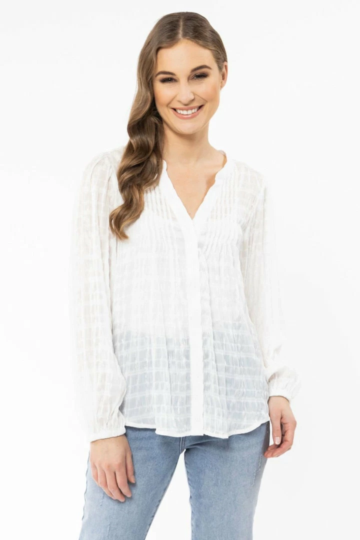 Seeking Lola Wholesome White Lurex Button Down Shirt Fashion
