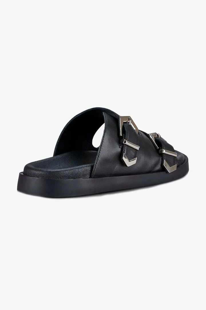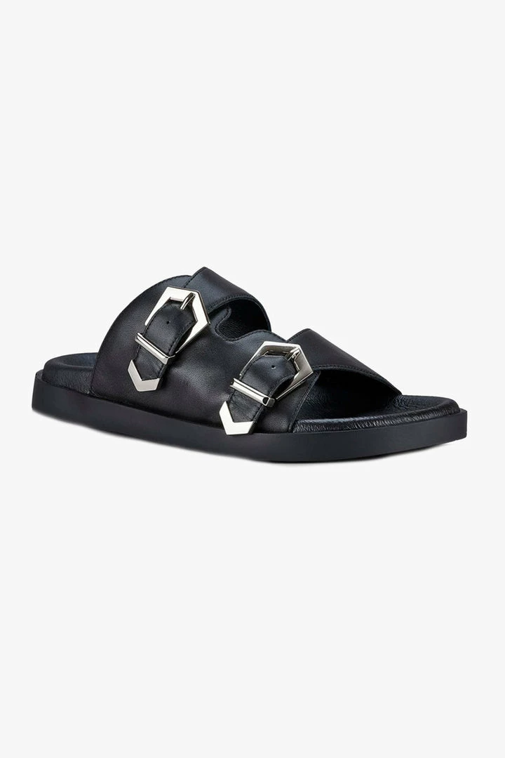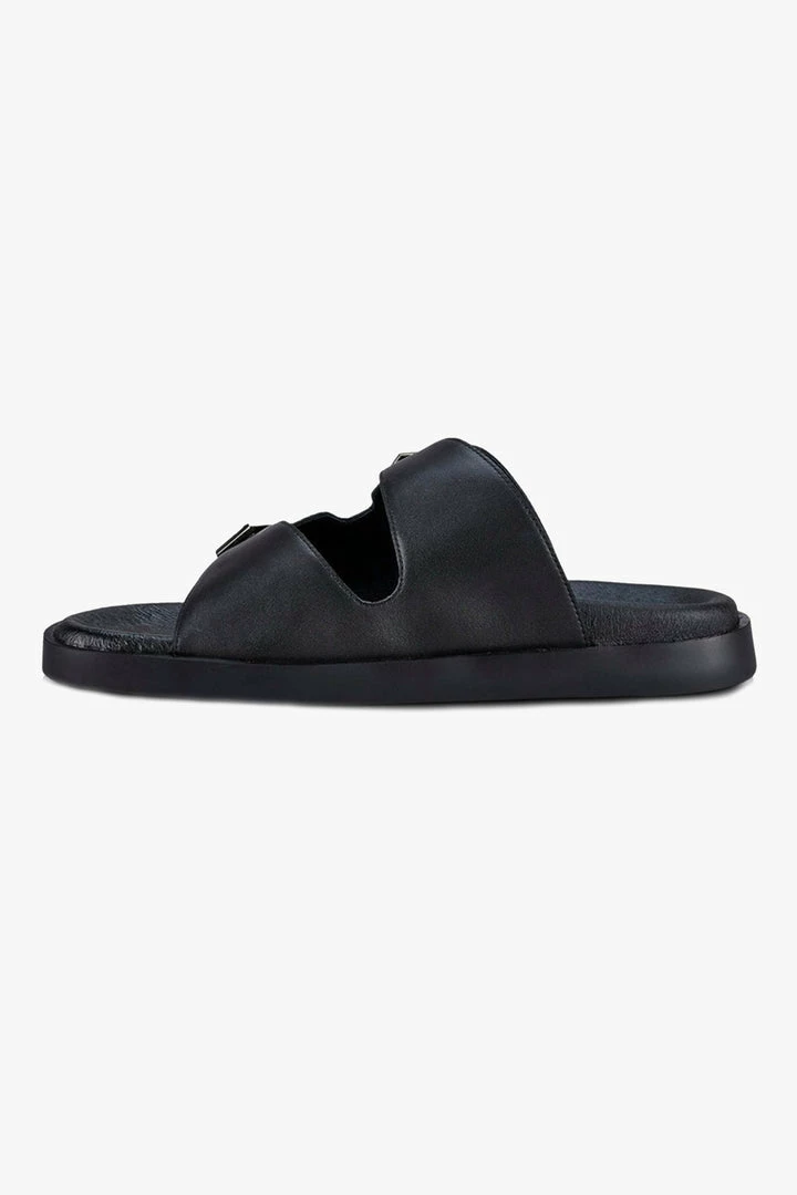 Solsana Mika Black Footbed Buckle Slides Accessories