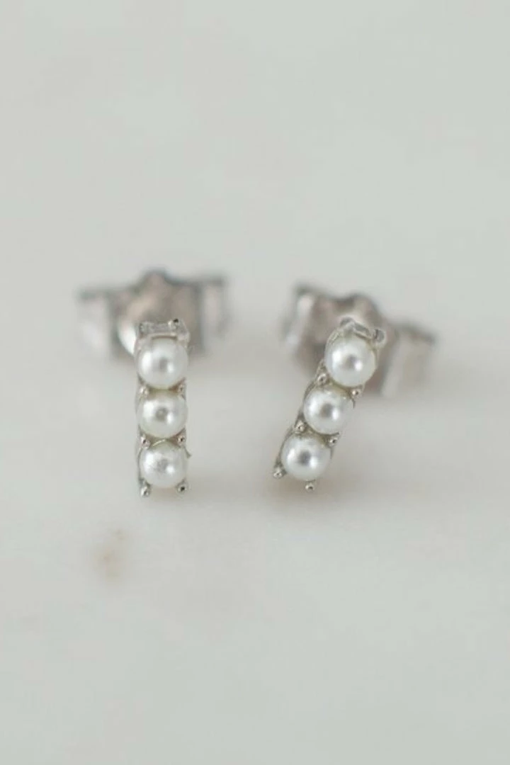 How sweet are these? Simple bar studs made up of three little pearls. Cute stacked or on their own.