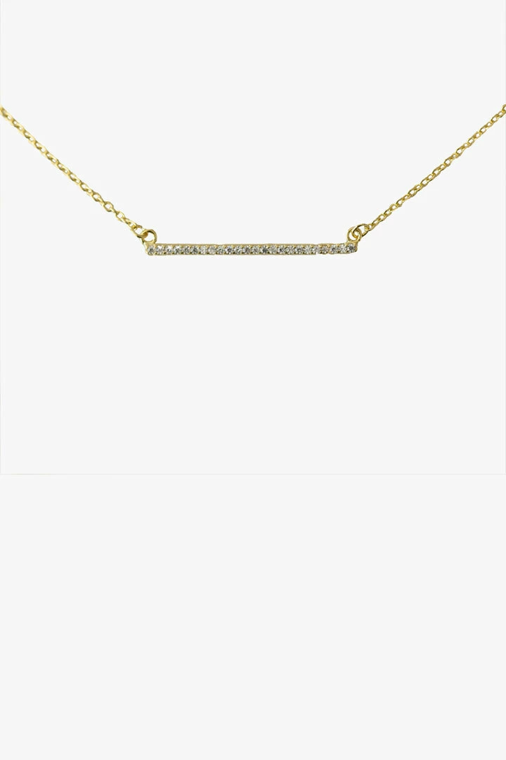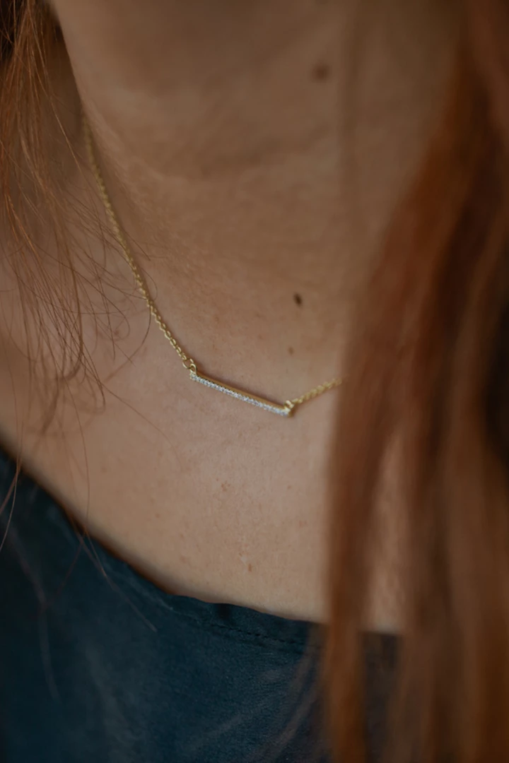 Our mini-bar necklace, with sparkles. This fine bar is set with zircons, a sweet layering piece.
