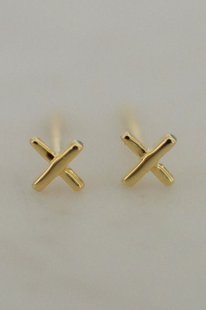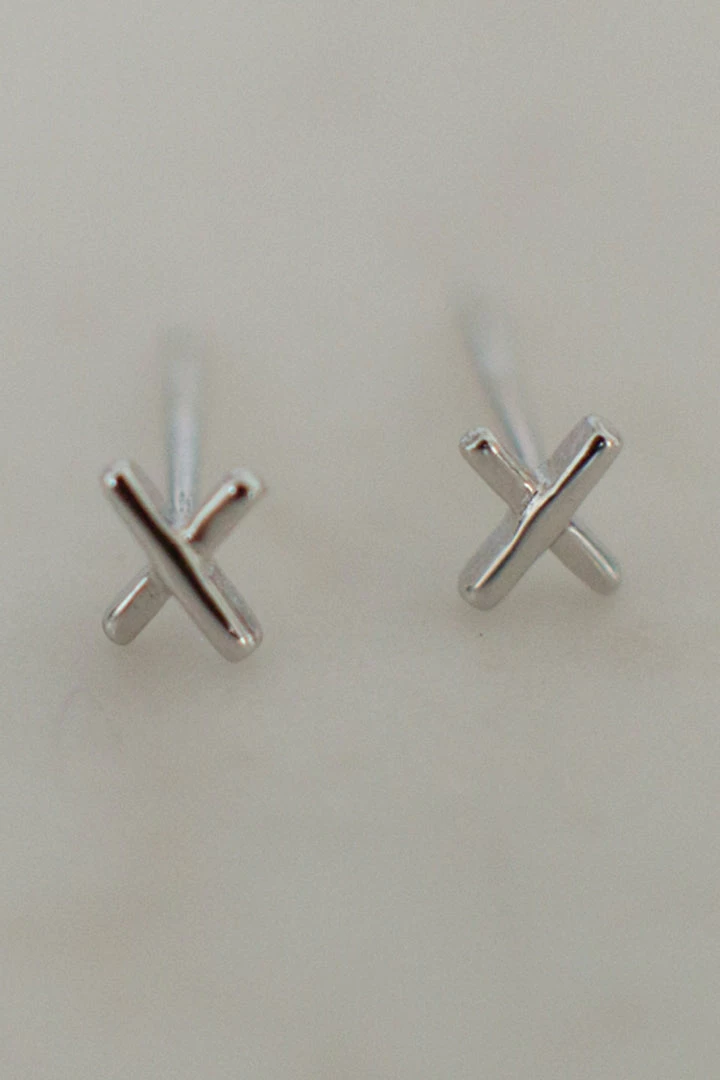 A pair of simple ‘x’ and ‘x’ stud earrings.