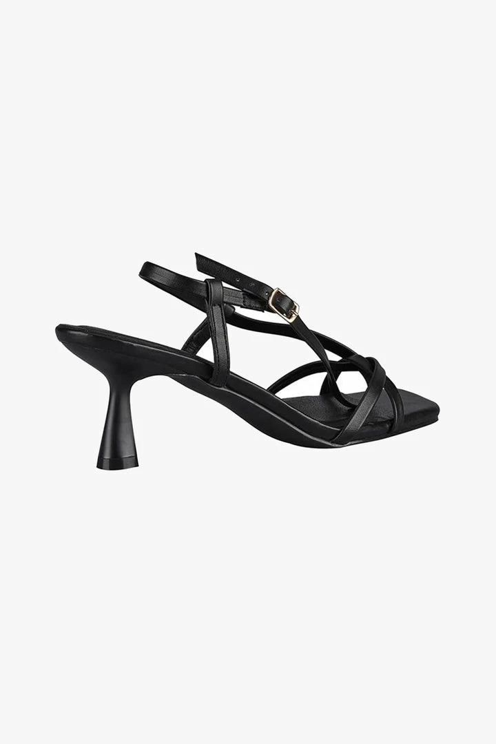 The Layla heel by St Sana elevates the strappy sandal trend with a series of thin, feminine straps that cross cross the front of the foot before extending upwards to secure around the ankle. Finished with a modern fluted 6cm heel, this versatile style is a date night essential.