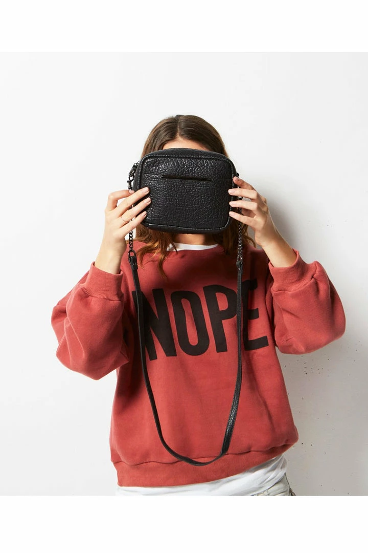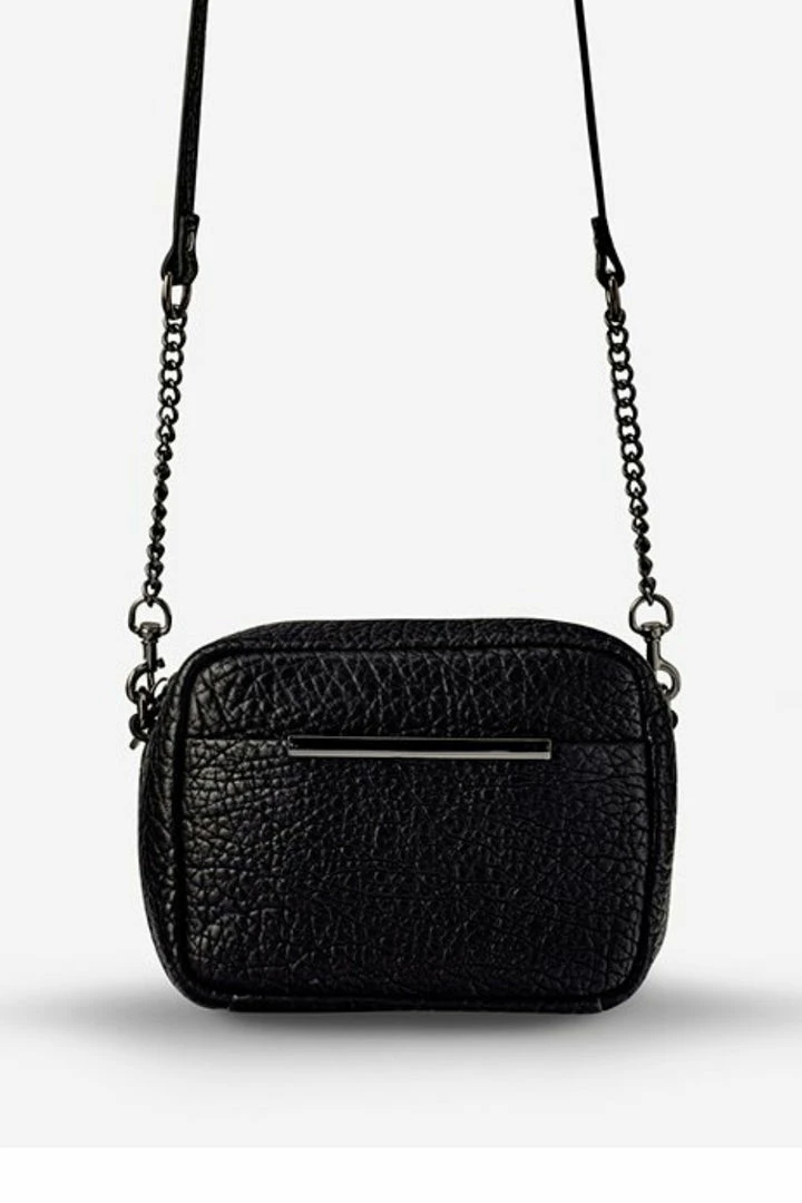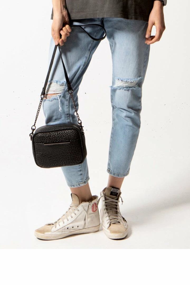 This is it. You’ve defeated many foes, passed all the tests. With the Cult crossbody bag, you’re a shadow, a part of the night, darkness itself. Featuring soft shrunken pebble leather with quality gunmetal hardware and shoulder strap chain.