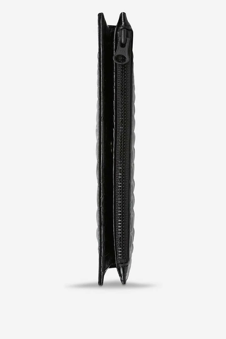 In the beginning, before the great corruption lay the seed of something astounding to come. With a slim silhouette and profile, the In The Beginning wallet is made of soft shrunken pebble leather and finished with matte rose gold YKK hardware. The outside zipper section makes for easy access to your cash without having to open the main section of the wallet. Whilst the alternate card slots ensure the wallet stays compact and even when full.