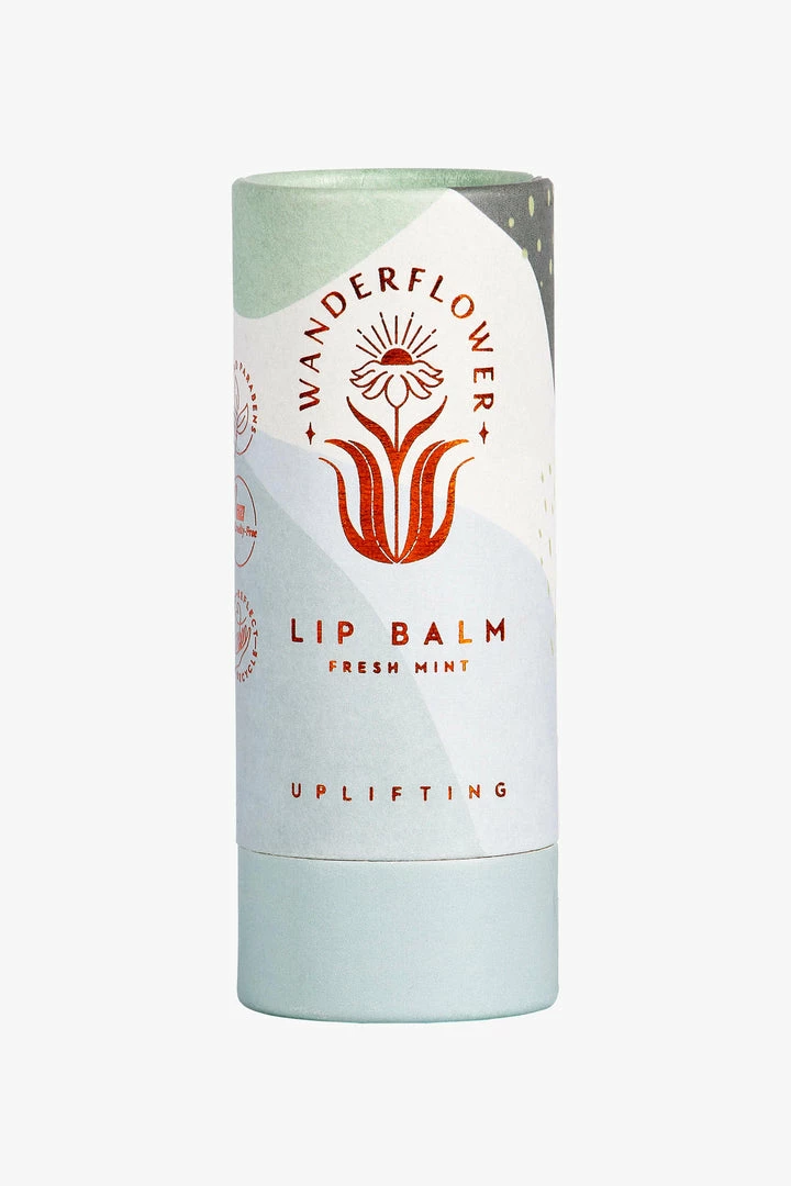Keep your lips moisturized with this reviving, minty Fresh Mint Lip Balm from Wanderflower. The fresh mint fragrance uplifts and awakens the senses. Enriched with shea butter and sweet almond oil