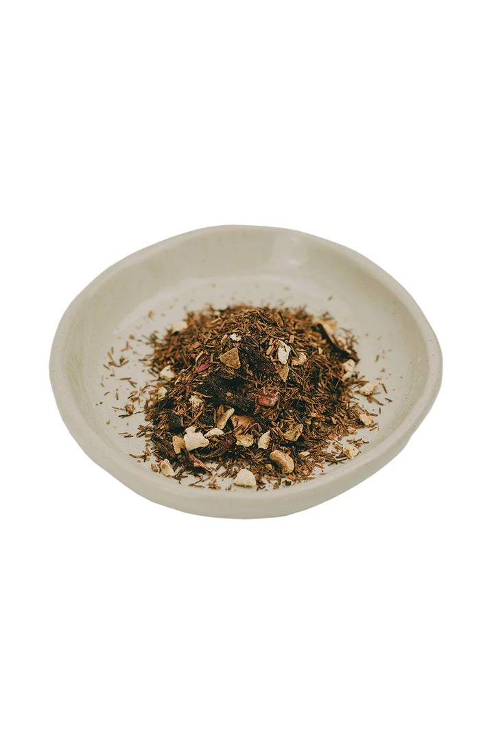 Naturally sweet rooibos tea from the Western Cape of South Africa is combined with juicy blood orange peels and hibiscus. Whether you prefer it hot or over ice this treat is soothing, refreshing and addictively tangy.